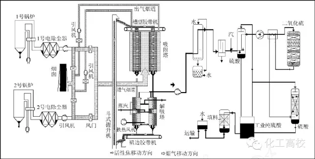 活性焦煙氣脫硫技術(shù)工藝流程示意